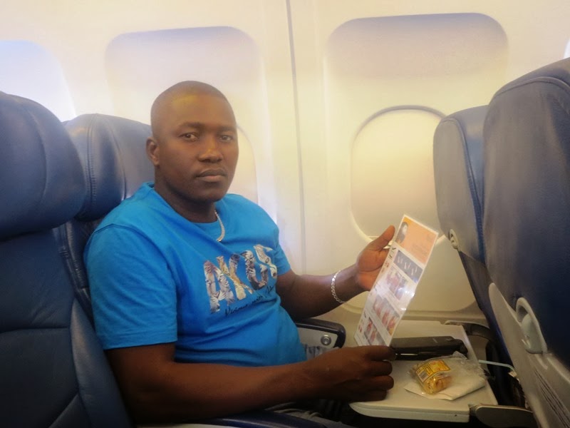 Mdau wa Mbeya yetu Charles Fumbo akipozi baada ya kushuka kwenye ndege ya fastjet